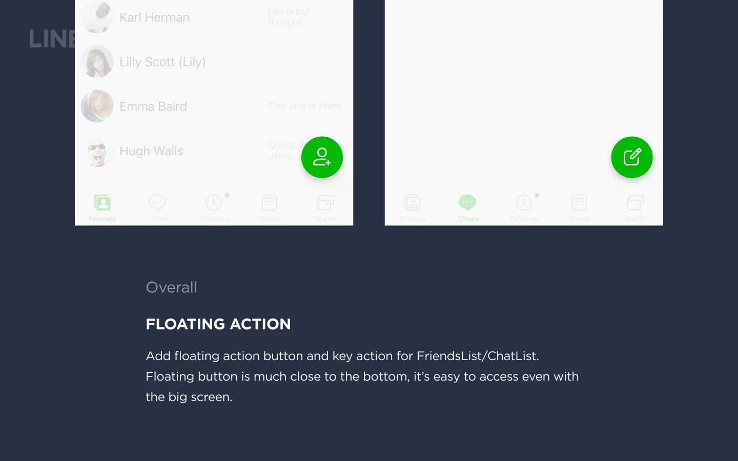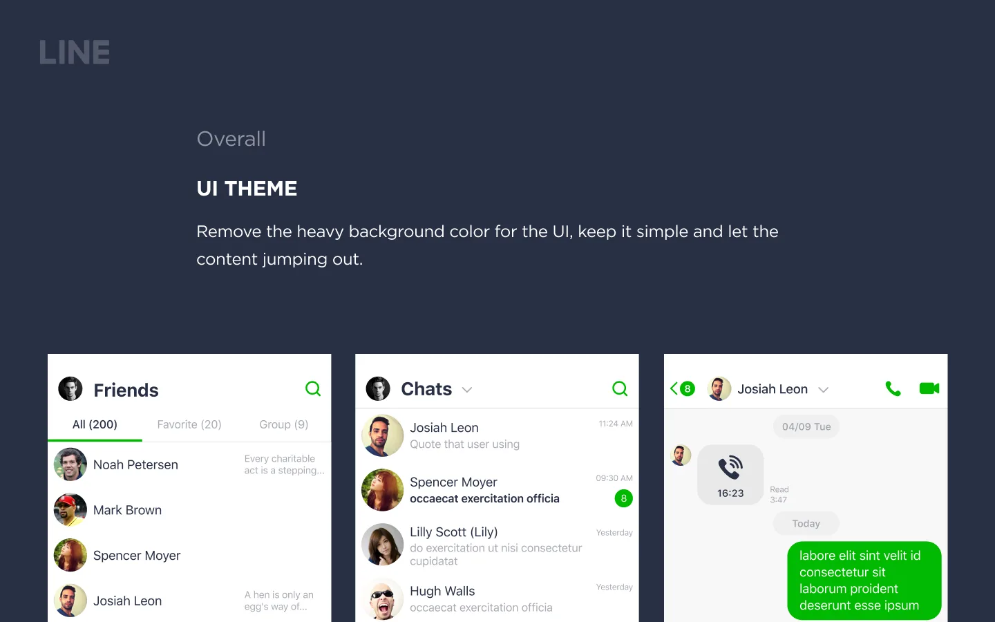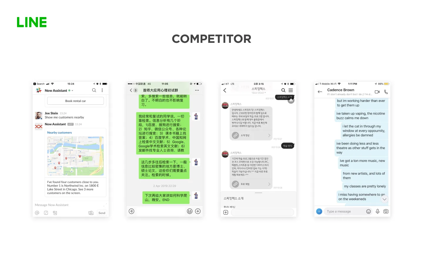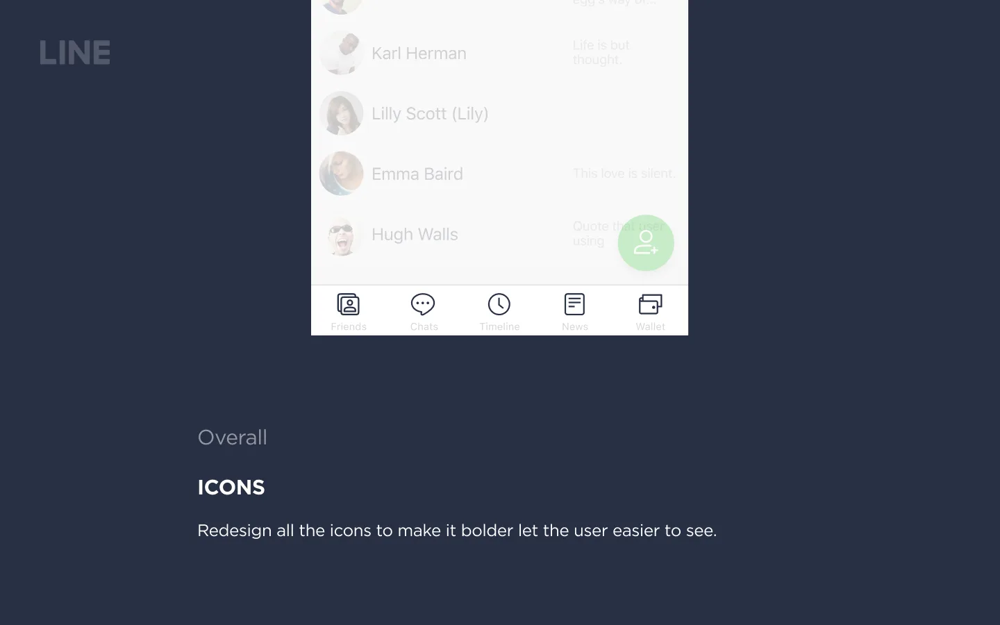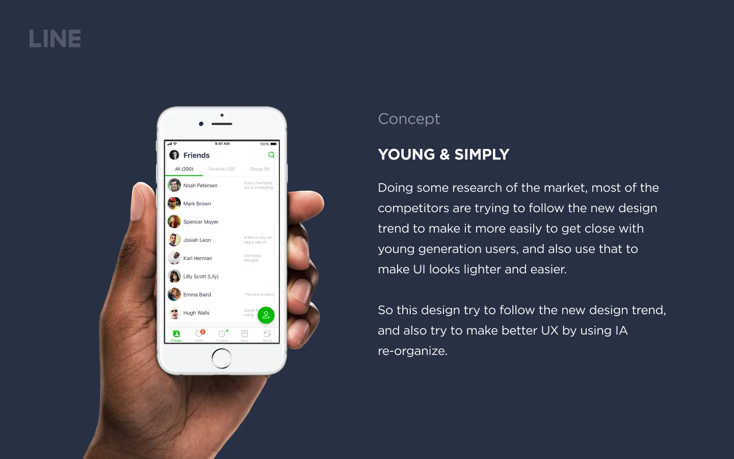 I got this assignment from LINE design interview. I started with the assignment's goal, do the research of the competitors in the same market, try to find the point that LINE can be in the same level of the trends, and also re-organize the information architect for the apps, made a design concept with UX improvement.