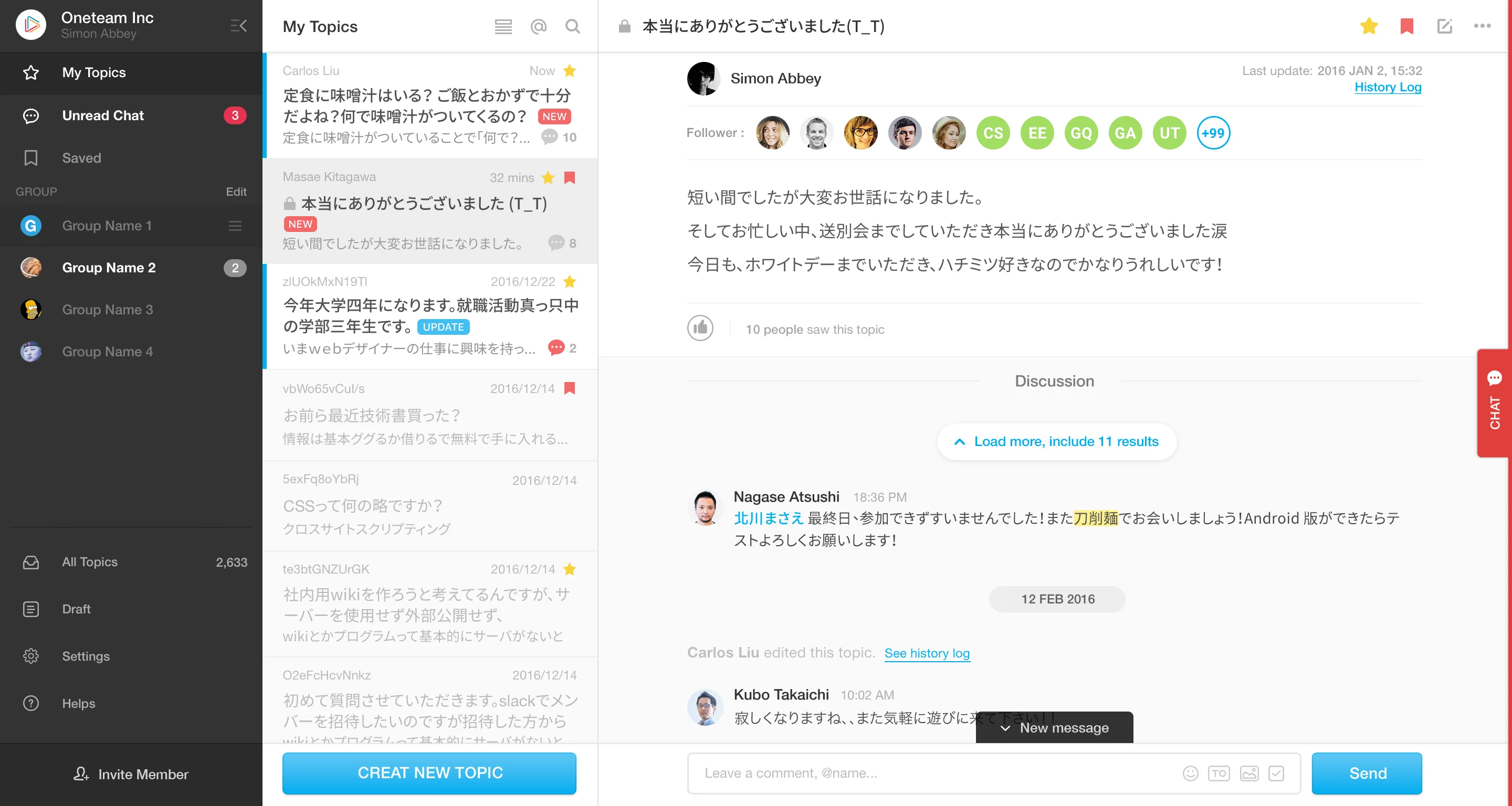 Oneteam is a topic-based enterprises communication platform, where each topic will form a chatroom. Unlike Slack and many other chat platforms, which is mainly optimized for chronological discussions. Overtime, the amount topics for our users will accumulate overtime, that’s when it gets tricky to understand whether the topic has ended. Additionally, project management can't be tracked, allowing users to create repeating topics again and again. We needed to find a new way that makes it easy for users to both understand the status of the topics and to track / manage project topics.