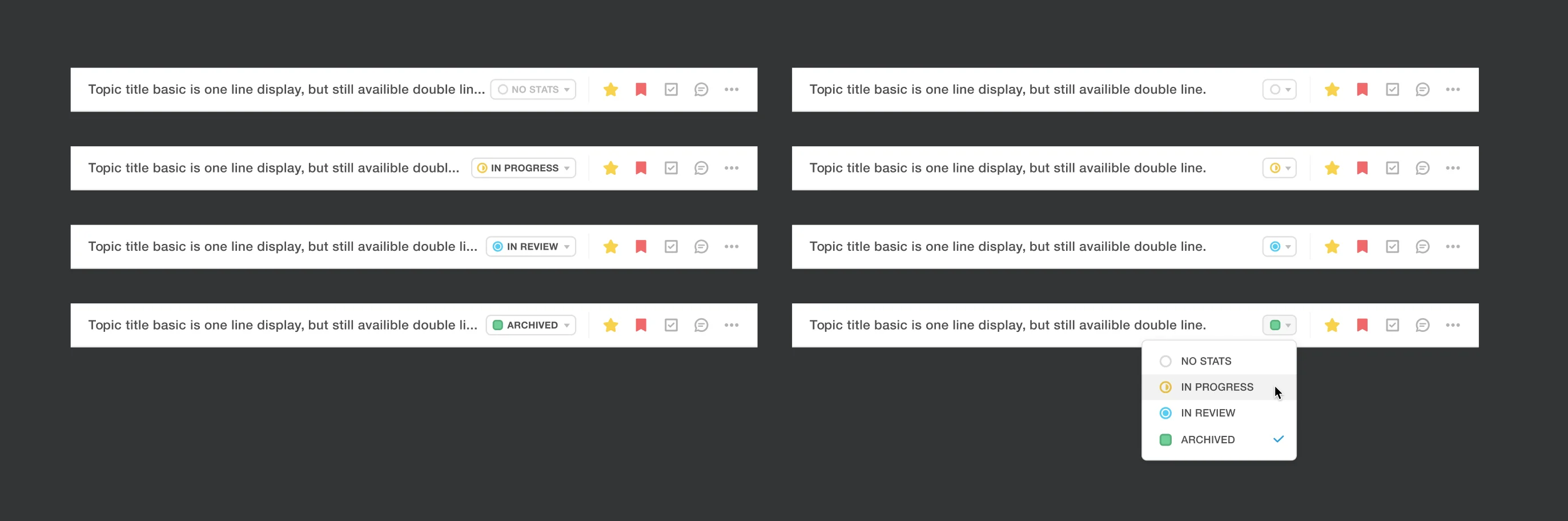 The user needs became very clear: They need something that’s easy to manage, and easy to search. Therefore, in the design, we brainstormed and explored many different ideas, of which we validated via internal user testing. One of the key outcomes as adding a concept of status into our products, including: No Stats/In Progress/In Review/Archived, serving as an added layer of indication to enable better search and management experience. This feature was released shortly after I left the company, and I’ve heard users are loving it!